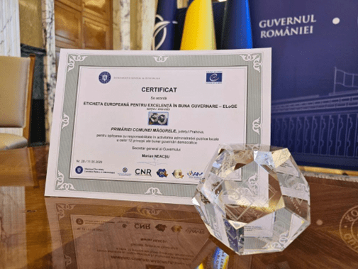 În data de 11.05.2023, la Palatul Victoria, a avut loc evenimentul de închidere a primei ediții a implementării Etichetei Europene de excelență în buna guvernare locală (ELoGE) și acordarea premiului ELoGE și a diplomei pentru autorități publice locale câștigătoare ale primei ediții din România.