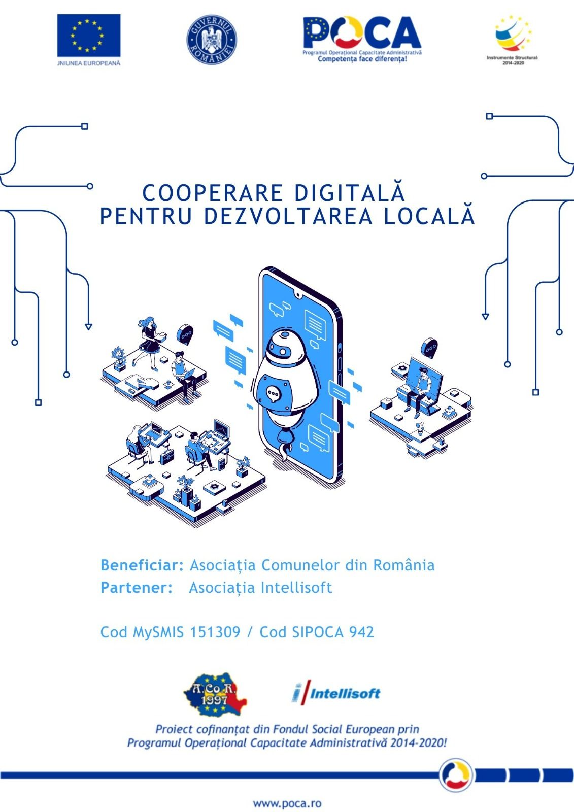 În perioada 26 august 2022 – 26 octombrie 2023, Asociația Comunelor din România (ACoR) a implementat, în parteneriat cu Asociația Intellisoft, proiectul „Cooperare digitală pentru dezvoltarea locală”, cod SIPOCA 942/ cod MySMIS 151309, finanțat prin Fondul Social European, în cadrul Programului Operațional Capacitate Administrativă. Obiectivul general al proiectului a fost consolidarea capacității ONG-urilor partenere de[citește mai mult]