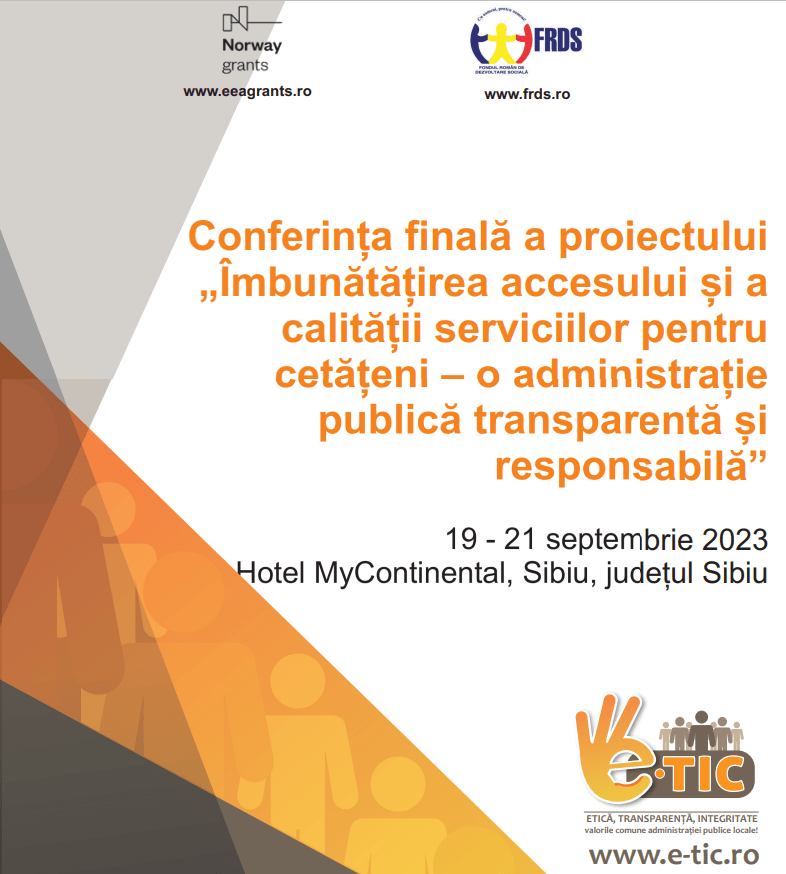 În perioada 19 – 21 septembrie 2023, la Hotelul MyContinental din municipiul Sibiu, județul Sibiu a avut loc Conferința finală a proiectului „Îmbunătățirea accesului și a calității serviciilor pentru cetățeni – o administrație publică transparentă și responsabilă”. Proiectul a vizat creșterea gradului de conștientizare a reprezentanților autorităților locale cu privire la aspecte ce țin de[citește mai mult]
