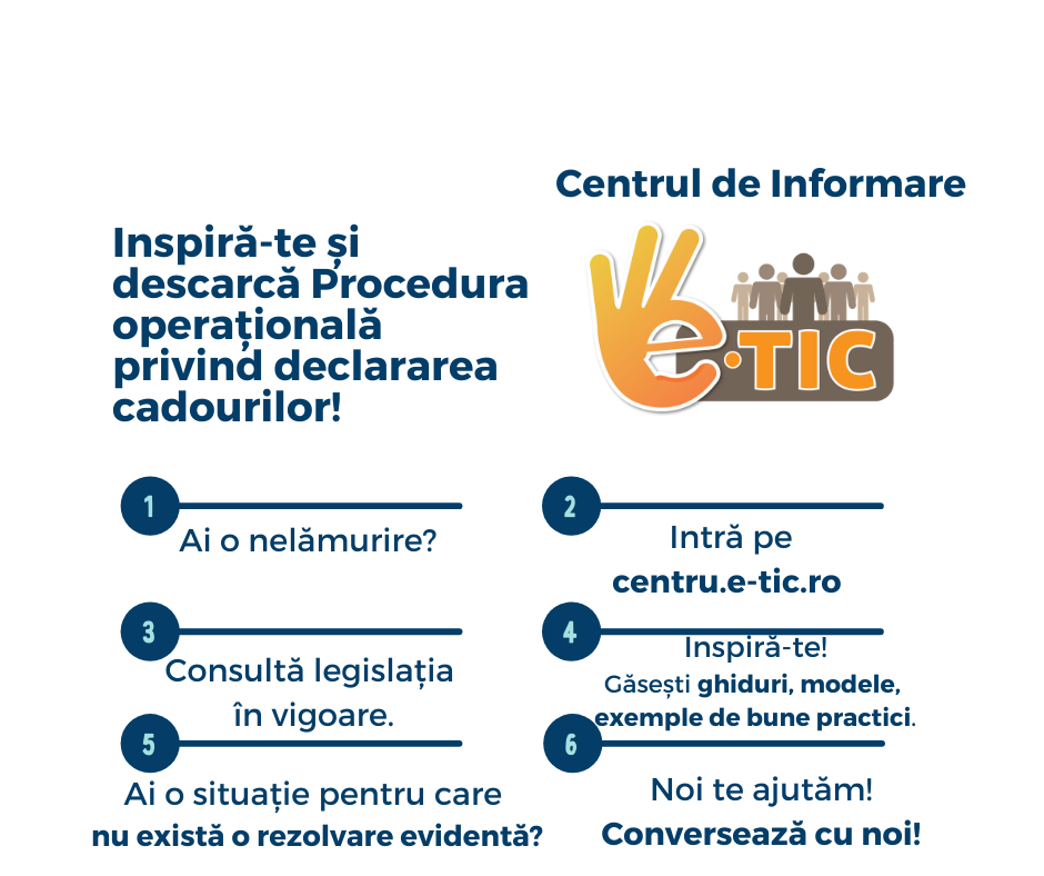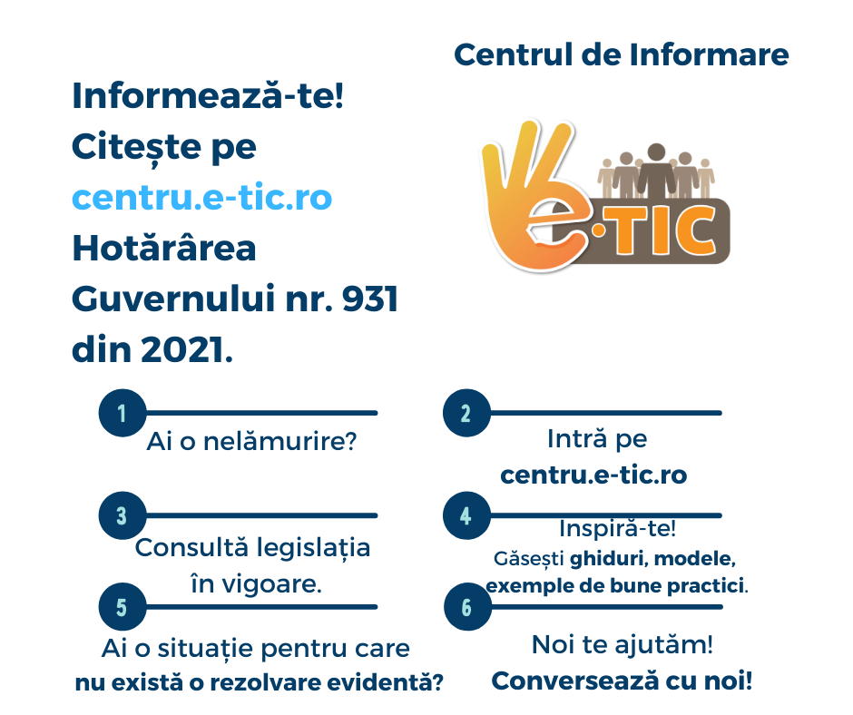 Centrul de informare e-TIC este o platformă realizată de Asociația Comunelor din România, în parteneriat cu AMR – Asociaţia Municipiilor din România și KS Kommunesektorens organisasjon, in cadrul proiectului „Îmbunătățirea accesului și a calității serviciilor pentru cetățeni – o administrație publică transparentă și responsabilă”, finantat prin Granturi SEE & Norvegiene și Programul Dezvoltare locală, reducerea sărăciei[citește mai mult]