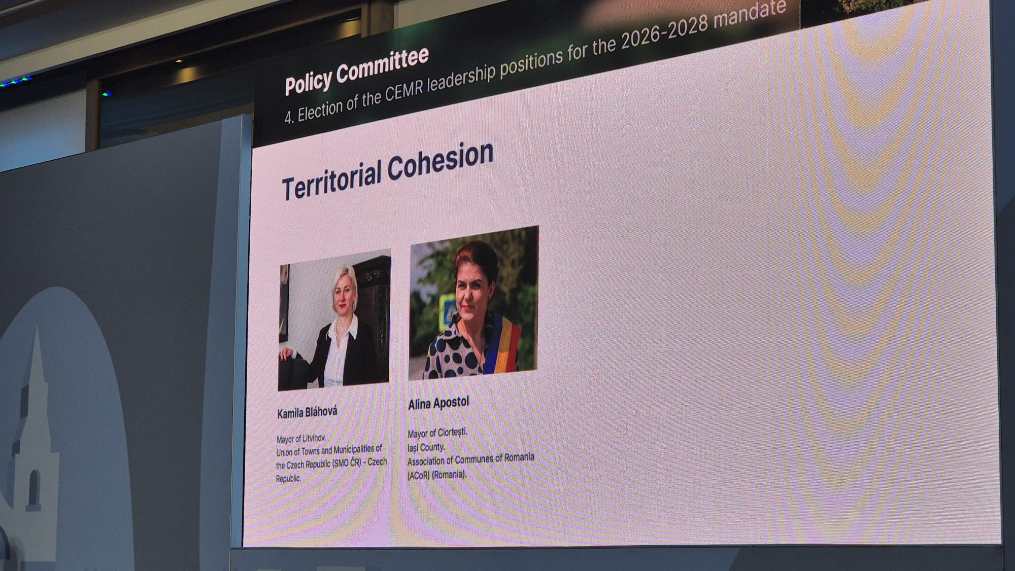 Tot în cadrul acestui eveniment, doamna Alina APOSTOL, primarul comunei Ciortești, județul Iași, a fost nominalizată ca purtător de cuvânt al Consiliului Comunelor și Regiunilor din Europa în domeniul Coeziunii Teritoriale.
