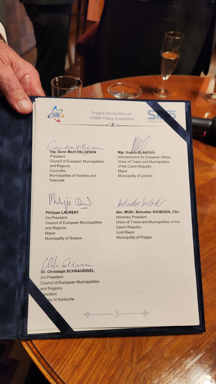 Evenimentul s-a finalizat cu Ceremonia de semnare a Declarația de la Praga – „Mai multă încredere și o voce mai puternică pentru un parteneriat strategic cu autoritățile locale și regionale, la Reședința Primarului din Praga, subliniind angajamentul guvernelor locale și regionale de a conduce schimbări pozitive în Europa.
