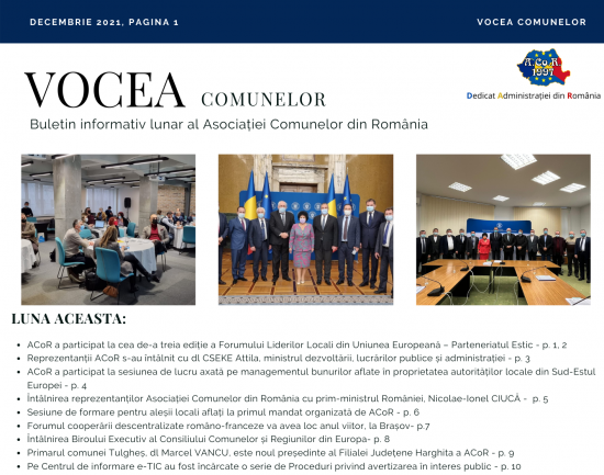 - Doamna Mariana GÂJU, primarul comunei Cumpăna, aleasă vicepreședinte al Consiliului Comunelor și Regiunilor din Europa!– p. 6